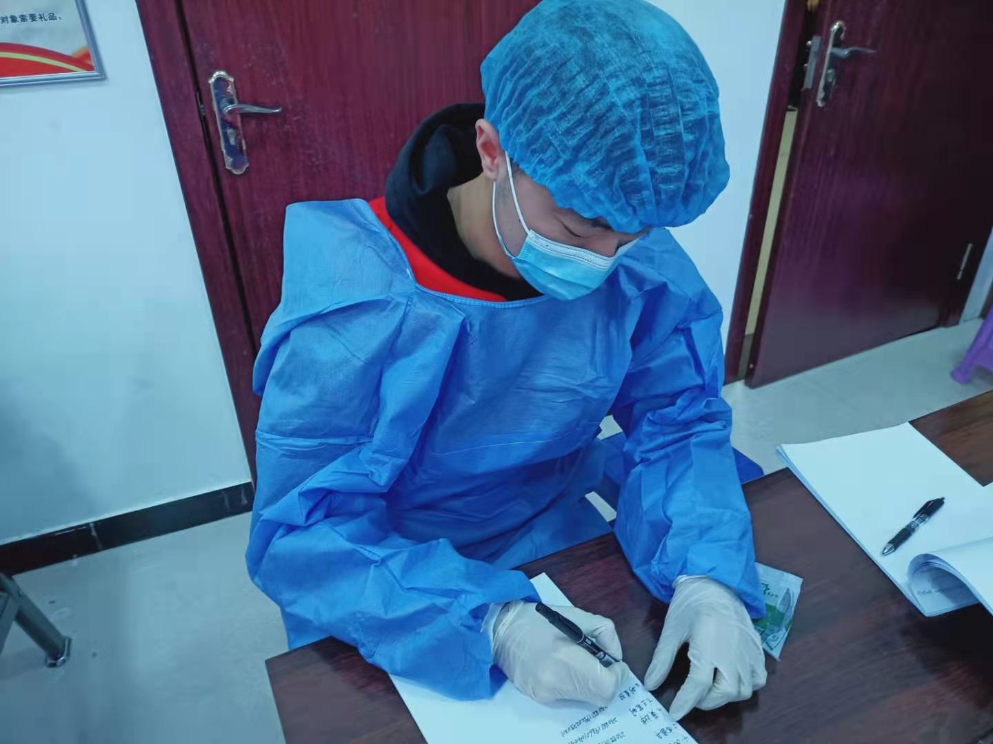 他是安全工程学院安全17-2班钱英龙,是一名中共预备党员,曾任安全工程学院学生分会主席,目前在肇州县做一名防疫志愿者。黑龙江省的疫情形势不容乐观,志愿者也严重短缺,回乡之后钱英龙便积极响应号召,成为了当地疫情防控工作的志愿者。每天早上8点他便穿好防护服随着医护人员到各个村屯、敬老院,养殖场,太阳能场组织居民和工人扫码录入信息,积极配合医护人员维持核酸检测秩序。虽然东北的冬天是寒冷的,但心里却是火热的,相信我们一定能早日战胜病毒。