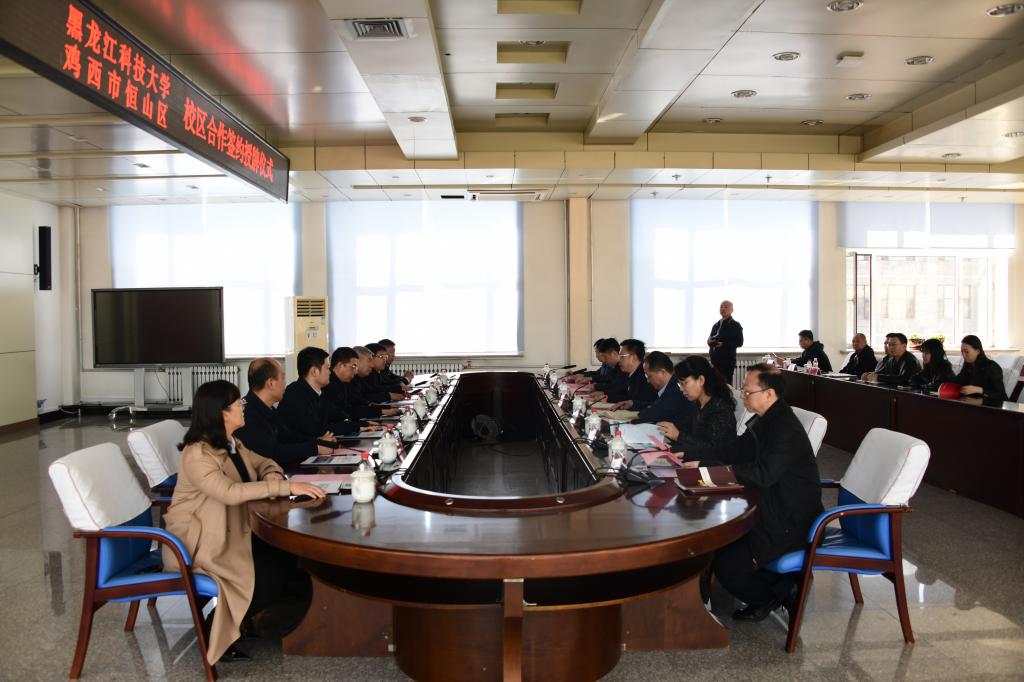 校地双方进行了友好交流座谈,就合作共建人才工作站、共建人才培养实习实训基地、招才引智等方面达成了合作共识。【官网】与鸡西市恒山区签署了合作协议框架书,鸡西市恒山区在学校建立人才工作站,学校在鸡西市恒山区建立就业创业基地、实习实训基地,以合作共赢促发展。