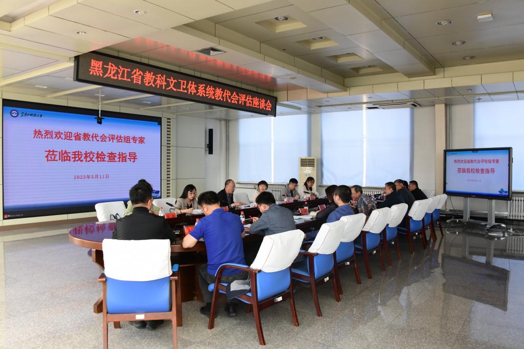 5月11日下午,按照省委教育工委、省教科文卫体工会《关于印发<黑龙江省本科院校教代会评估工作实施方案>的通知》要求,由哈尔滨商业大学工会常务副主席周鸿武为组长、哈尔滨金融学院工会副主席叶云红为副组长的省高校教代会评估组到校进行教代会评估检查。校党委副书记桑玉军,校党委常委、副校长张宝成,校工会常务副主席王建国、副主席苗慧,学校办公室、组织部、人事处等职能部门负责人,基层分工会主席代表和一线教师代表参加了汇报会。