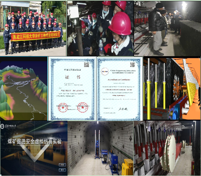 自采矿工程专业启动工程教育专业认证工作以来,不断深化专业教学理念改革,践行“以学生为中心,成果导向,持续改进”的工程教育专业认证理念,在课程改革、实践教学和创新创业教育等环节,全要素提升了专业核心竞争力,专业认证期间受到专家组的一致好评。专业依托“黑龙江省煤矿深部开采地压控制与瓦斯治理重点实验室”“黑龙江省煤矿冲击地压防治工程研究中心”等平台建设,深化学校与企业资源相融合,积极开展科技服务与社会服务,推动教学与科研相互促进与融合;依托“国家大学生实施基地”“省级虚拟仿真实验教学项目”“矿业馆”“地下模拟矿井”等校内外创新与实践教学基地,推动理论教学与实践教学相融合。在人才培养上使矿业类通识专业知识与煤炭行业前沿有机结合,实现了学科交叉融合培养与校企协同创新、协同育人,不断创新校企协同人才培养模式。