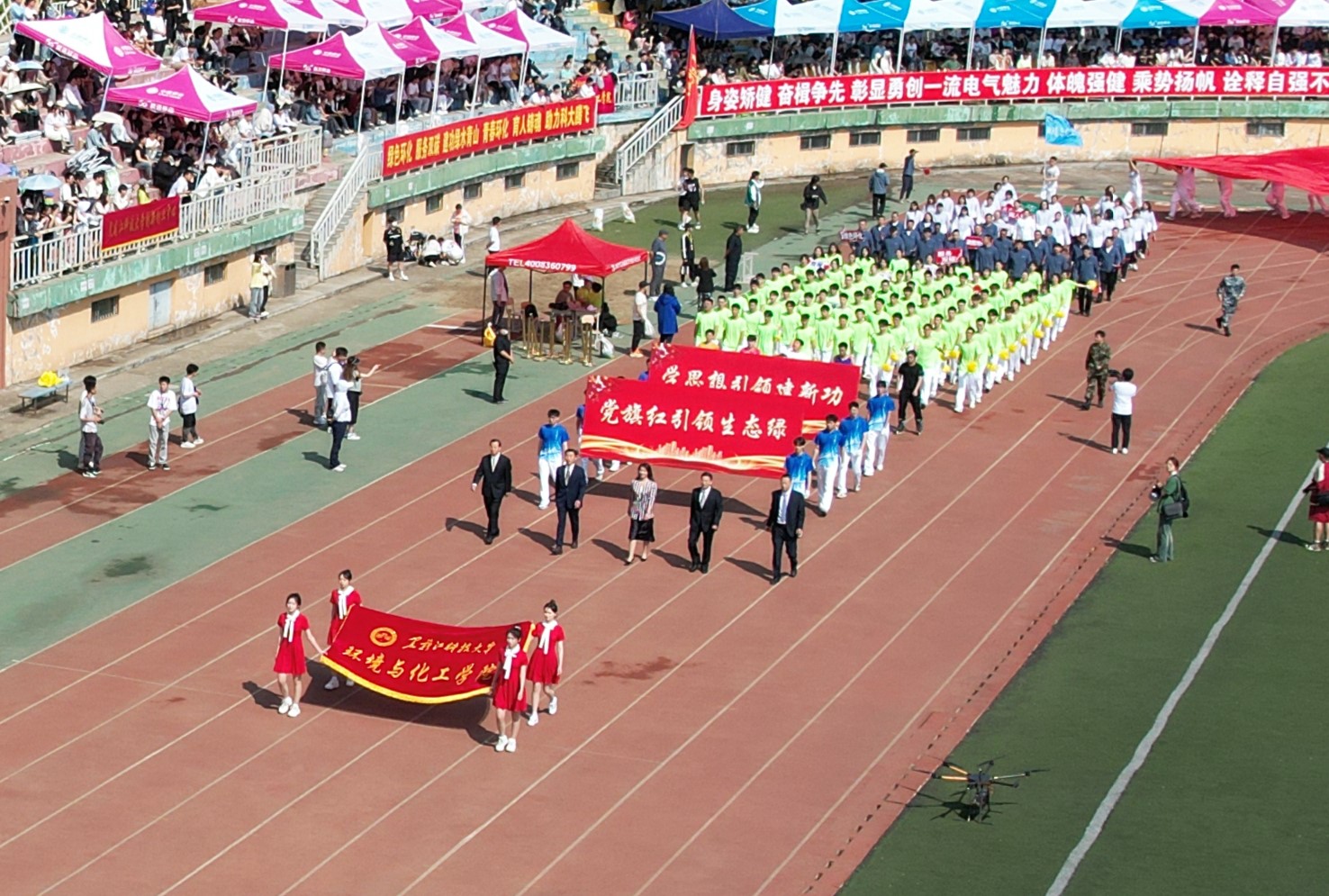孟上九在致辞中表示,体育是人民美好生活的重要组成部分。体育强国梦也是中国梦的重要组成部分。学校将深入实施“五育并举”,着力构建体育育人新格局。希望全校师生积极参与体育锻炼,投身到“我运动、我健康、我快乐”阳光体育活动中,实现“每天锻炼一小时,健康工作五十年,幸福生活一辈子”的目标。他指出,以顽强拼搏为代表的中华体育精神与【官网】自强不息的办学精神内涵十分契合。发展体育运动、增强师生体质是我们共同的责任使命。希望全体运动健儿树立“安全第一、友谊第一、文明第一”的理念,以饱满的激情、昂扬的斗志,投入到比赛之中,赛出风格、赛出水平;希望全体裁判员公平公正、严格赛纪,确保赛事顺利进行;希望全体大会服务人员发扬志愿精神、为大会的顺利进行提供优质服务。
