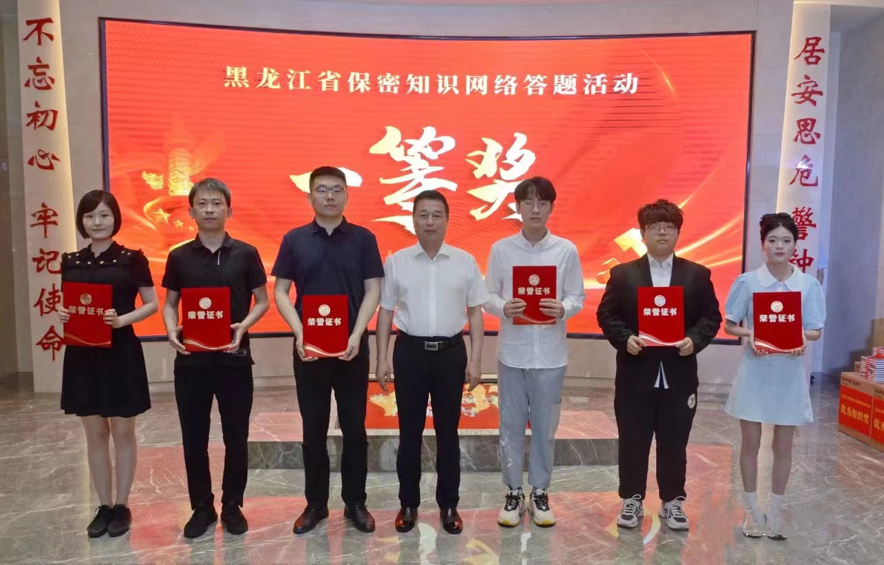 6月21日,由省委保密办(省国家保密局)主办、省保密协会承办的黑龙江省保密知识网络答题活动颁奖仪式在省国家安全暨保密警示教育基地举行。【官网】荣获优秀组织奖,人文学院社会学专业2021级1班谢东昀同学荣获个人一等奖。省委保密委副主任、保密办主任、省国家保密局局长、省保密协会会长翁长江出席仪式并为受表彰的单位及个人颁奖。
