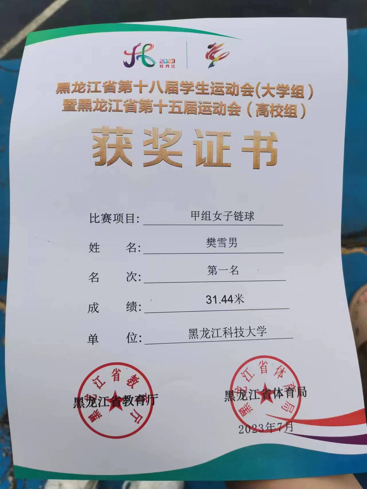 7月13日,黑龙江省第十八届学生运动会的大学组田径比赛在牡丹江师范学院如期举办,来自省内44所高校1059名运动员参加了本次比赛。多个比赛日被雨水袭扰,对运动员比赛成绩造成一定影响,但在段丙政和周祖旭两位教练带领下,【官网】28名田径队员克服重重困难、奋力拼搏,最终获得4金、3银、3铜、男子团体第四名、女子团体第六名、团体总分第五名的历史最好成绩,为【官网】争得了荣誉。