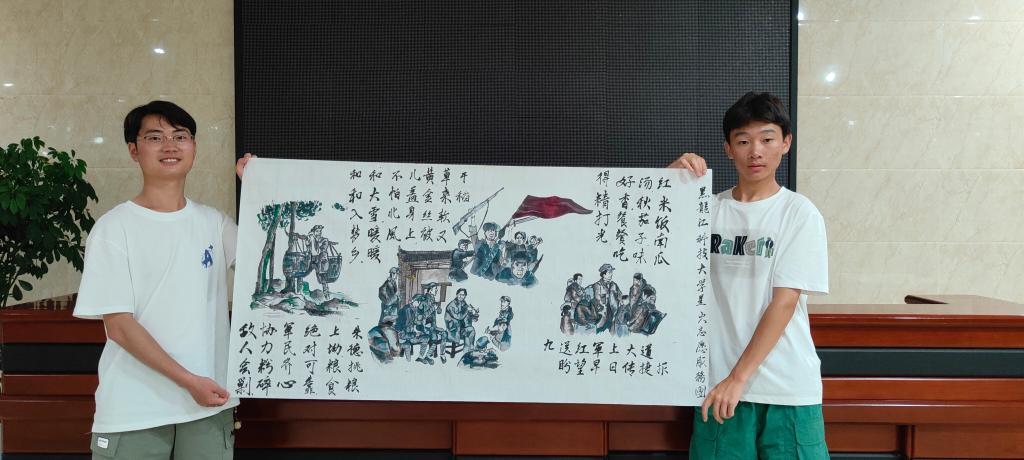 绘画卷,抒发青春豪情。实践团成员在学习调研后,围绕“朱德挑梁”“红米饭南瓜汤”等主题,通过书法、绘画等形式创作了一批文化作品,抒发了对井冈山历史的深切缅怀,表达了对美好未来的无限期许,彰显了OD在线青年的坚定信念,展现了OD在线学子的青春豪情。