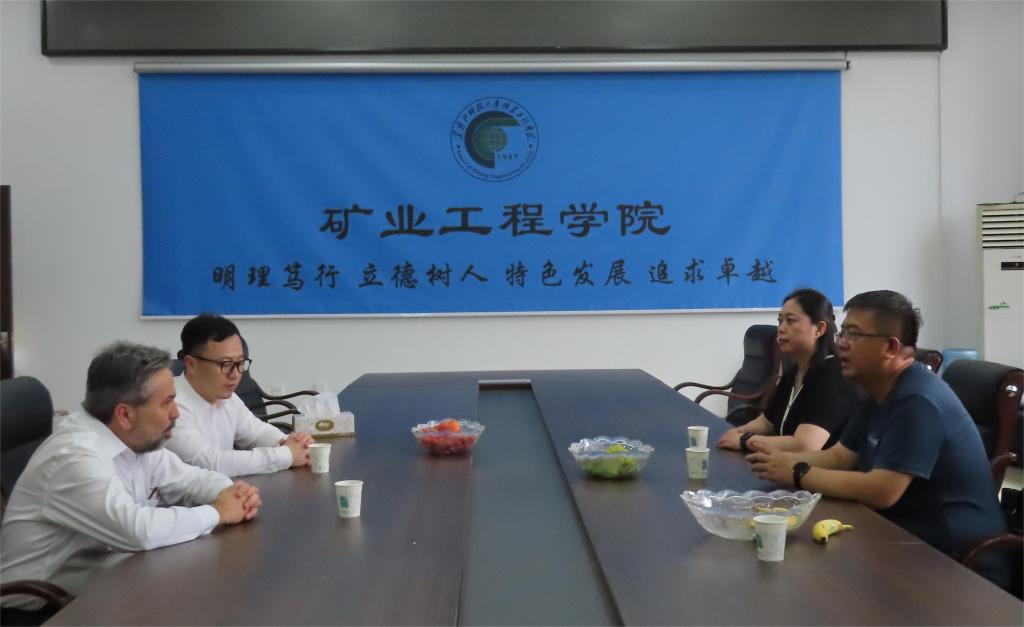 在接下来的座谈会上,院长肖福坤就学院办学特色、科研和社会服务、人才培养及实验室建设情况向来宾作了介绍。拉斯卡佐夫院士介绍了俄罗斯科学院远东分院与中方高校间的合作培养项目情况、实验室建设情况。就落实学校与俄方签署的《中俄智慧矿山联合实验室》合作协议相关细节,进行了进一步接洽。双方还就煤矿动力灾害防治、智能采掘与开采灾害感知等方向的课题合作进行了深入细致的交流,就采矿工程、资源勘查工程等专业互派国际交流生,就硕士研究生、博士研究生联合招生及培养、两校间的教师互访等共同感兴趣的话题进行了讨论。
