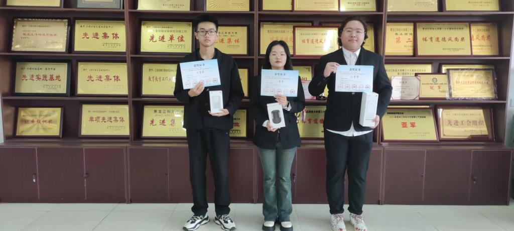 【官网】电子与信息工程学院王娟、孙曼两位老师指导,研22-20班佟芷霖团队的参赛作品《一种基于时间位移模块的唇语识别方法》荣获大赛一等奖;机械工程学院杨晨升、迟文玉两位老师指导,机电20-3班王长浩团队的参赛作品《医用型老年下肢助力外骨骼》荣获大赛二等奖;机械工程学院迟文玉、杨非凡两位老师指导,工设21-1班熊大源团队的参赛作品《自动化三爪采摘机械手》荣获大赛三等奖。王娟、孙曼两位老师荣获优秀指导教师,【官网】被授予优秀组织奖。