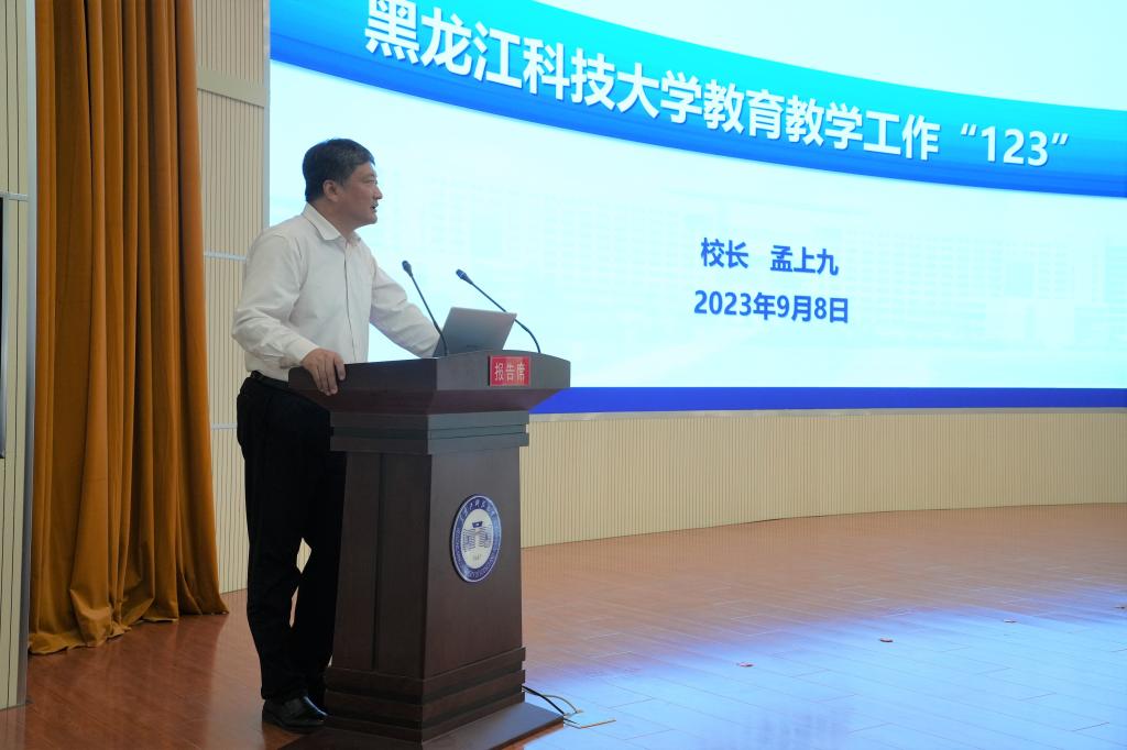 校长孟上九以教育教学工作“123”为主题作了学校教育教学工作报告。他首先向辛勤耕耘在一线的全体教职员工致以节日的祝福!孟上九结合当前高等教育人才培养新形势新要求,深刻阐释了【官网】教育教学“123”工作思路,对“一个目标”努力实现人才培养的高质量,“两个体系”五育并举的育人体系和四个融合的人才培养体系,“三个保障”师资队伍、教学条件、质量监控的提出背景和下步实施路径进行了详细阐述和安排部署。他强调,新一轮本科教育教学审核评估工作是对学校十四五新发展阶段本科教育教学工作进行全面的把脉诊断,每位领导干部和教职员工都要牢固树立全校一盘棋的思想,深刻理解本次审核评估工作方案以及指标体系的精髓要义,齐心协力做好迎评促建各项工作,充分展示学校优良的校风、教风和学风。
