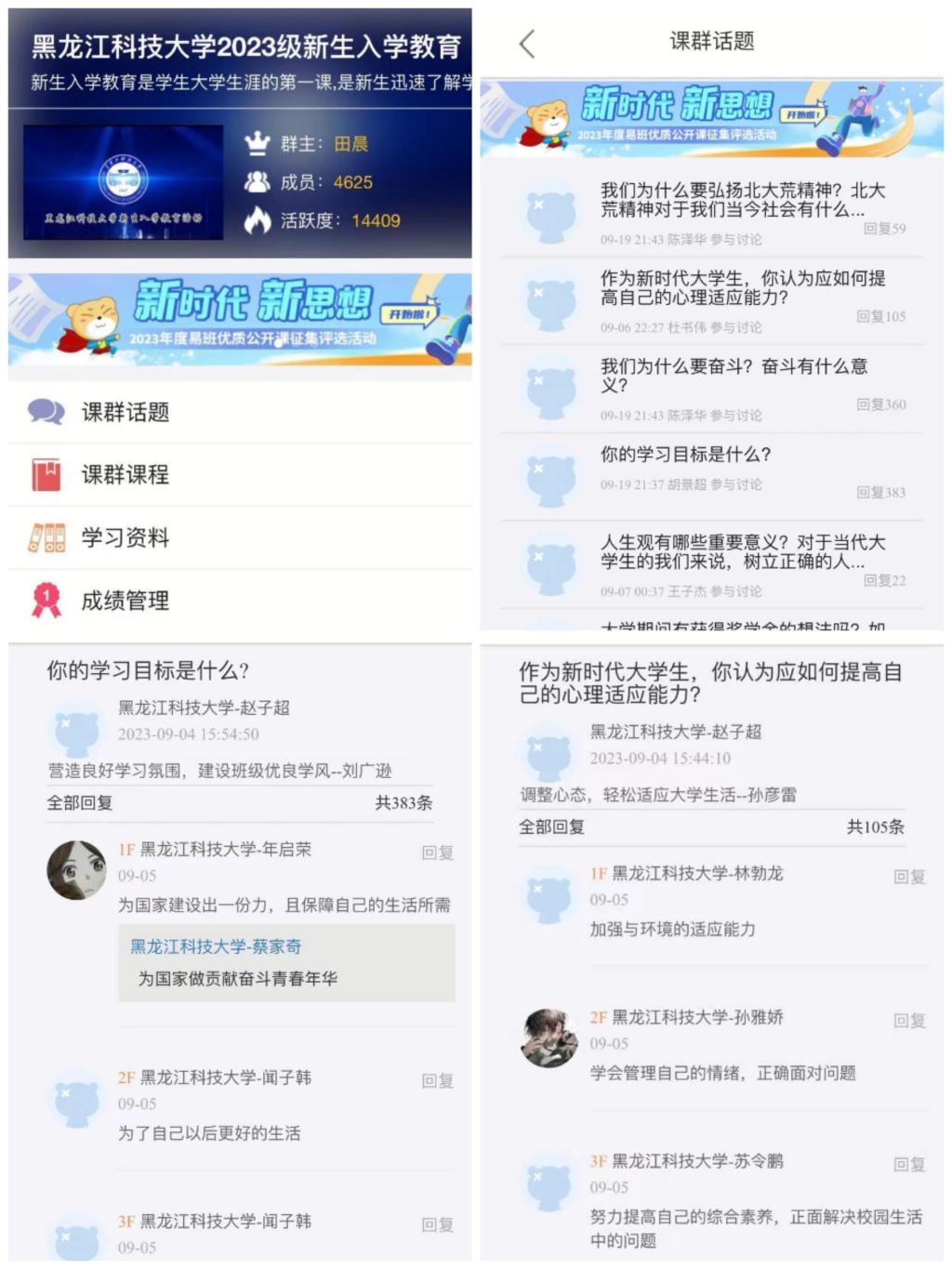 学工部(处)创新网络平台载体,首次依托易班优课平台开展新生入学教育。在信息网络中心的大力支持下,组织优秀辅导员围绕理想信念、学风建设、日常生活服务等主题内容开发系列微课十一讲。各学院采取集中学习和自主学习相结合形式,精心组织新生“云”学习,截止目前,易班优客累计活跃度达14409,话题讨论3000余条,使思想政治教育突破时空局限,热起来、动起来、活起来。
