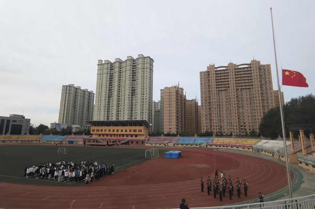 七十六载奋斗路,一心向党红旗扬。在中华人民共和国即将迎来成立74周年之际,校友们整齐的站在田径广场,目送大学生仪仗队国旗护卫队迈着铿锵有力的步伐走向升旗台,在嘹亮的国歌声中,五星红旗冉冉升起,全体人员神情肃穆,用最庄重的注目礼向国旗致敬,在仪式中铭记历史、不忘国殇,坚定理想信念,牢记历史使命,凝聚爱校报国力量。