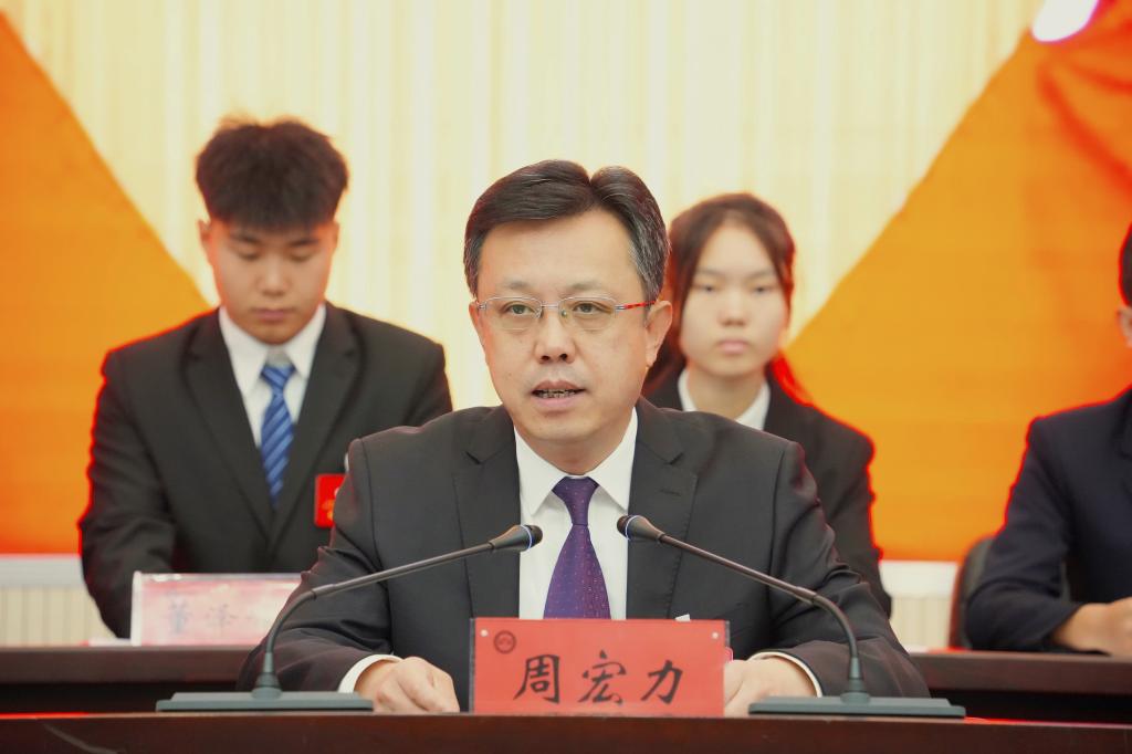 周宏力在讲话中向大会的胜利召开表示了热烈的祝贺,充分肯定了【官网】学生会组织在服务学生成长成才和助推学校高质量建设发展中做出的积极贡献,并分别对学生会组织、学生会工作人员及青年学生提出了殷切希望:一是希望全校各级学生会组织坚决听党指挥,在服务大局中贡献力量。要强化思想引领,勇担伟大时代赋予的光荣使命;要注重意识培养,在组织动员青年学生中发挥先锋作用;要坚守初心使命,在深化改革中彰显青春本色。二是希望全校各级学生会工作成员认真履职尽责,在争当模范表率中引领青年。要理想远大,做信念坚定的表率;要刻苦学习,做锐意创新的表率;要无私奉献,做服务同学的表率。三是希望全校广大青年学生勇于挺膺担当,在主动担当作为中展现风采。要坚定理想信念、培育高尚品格、练就过硬本领、矢志艰苦奋斗。