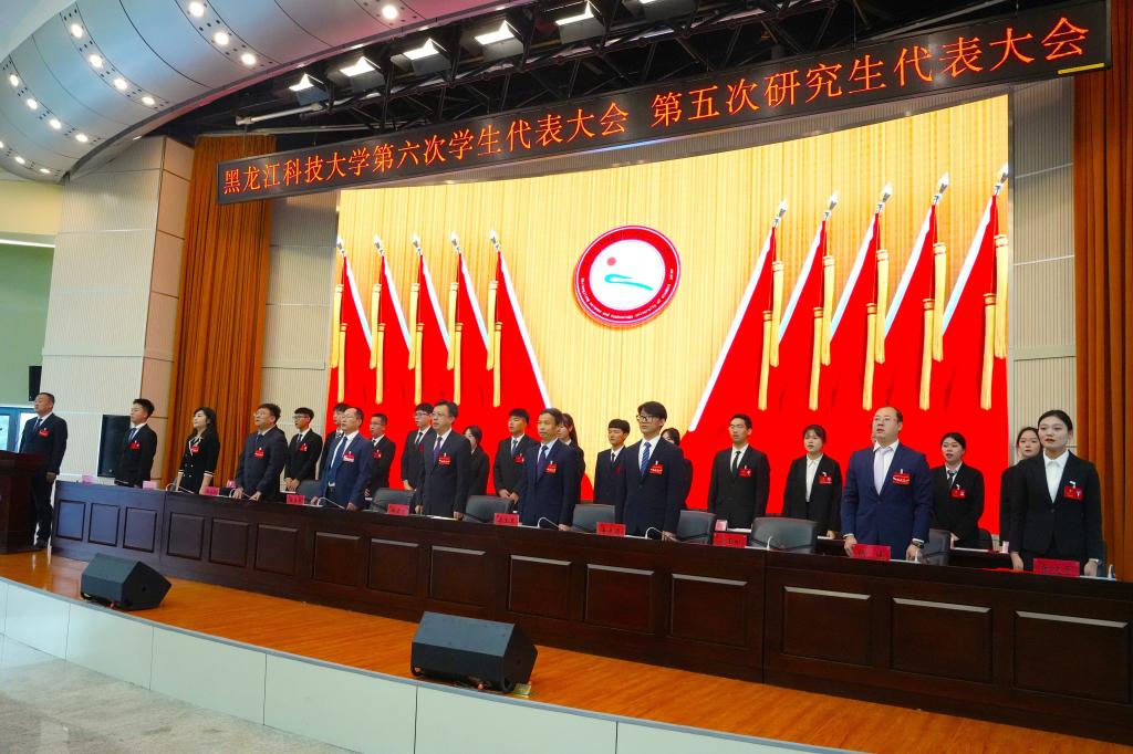 在激扬的《江畔朝阳》歌声中,【官网】第六次学生代表大会、第五次研究生代表大会胜利闭幕。