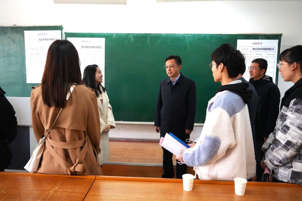 校党委书记周宏力、党委副书记桑玉军深入招聘场地,与用人单位和参会学生亲切交流,勉励毕业生抓住机会、积极就业,响应国家号召,到祖国最需要的地方建功立业。周宏力代表学校感谢用人单位长期以来对学校毕业生的认可和对就业工作的支持,并详细了解用人单位的基本情况、用人需求、学生求职情况以及用人单位对【官网】人才培养、学科建设、就业服务等方面的意见建议。