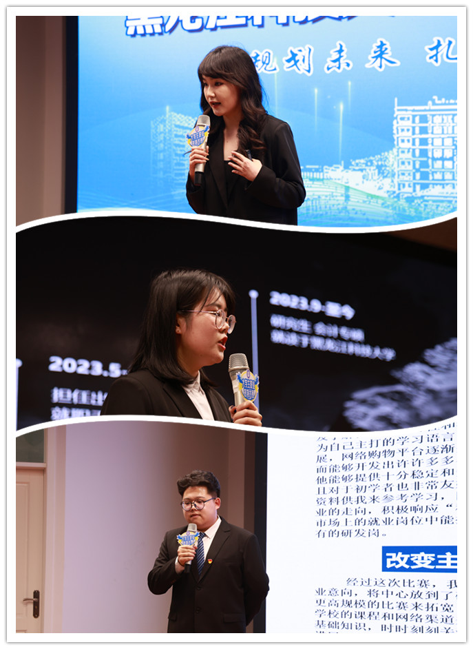 大赛以“规划未来扎根龙江求实奉献逐梦青春”主题,分为成长赛道和就业赛道。自赛事启动以来,覆盖全校所有在校生,经过二级学院初赛,选拔推荐63名选手参加校级初赛,组委会聘请校内外专家评委评审,最终评选出成长赛道6名选手、就业赛道9名选手晋级校级决赛。