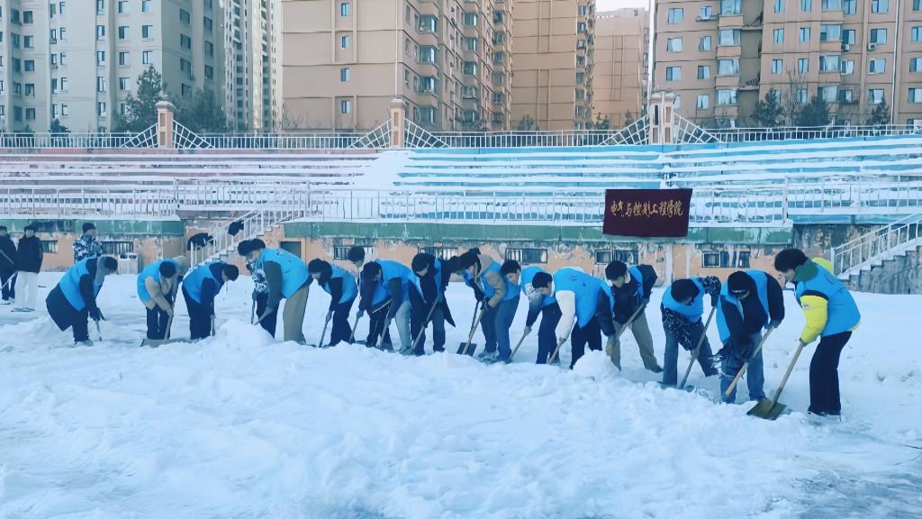 11月19日下午,学校运动场上红旗招展、人头攒动,情绪热烈、斗志昂扬,呈现出一派气势高涨又秩序井然的热闹景象。了解得知,这是校院两级团学组织开展的“清雪除冰•服务同学”专项行动的活动现场。入冬以来,连续两次降雪为我们美丽的城市披上了银装素裹,分外妖娆。冰雪覆盖为广大同学带来欢乐、激情与活力的同时,也对大家的户外体育活动造成了不小的困扰,能有一条“暖心跑道”便成了广大同学的心愿。得知同学们的心愿后,为同学们打造一条“暖心跑道”就成了校学生会一周以来一直心心念念的牵挂。于是,一次“清雪除冰•服务同学”专项行动计划就在校院两级团学组织中开始了精心谋划、设计、组织和实施,开始时的介绍就是该专项行动的场景。