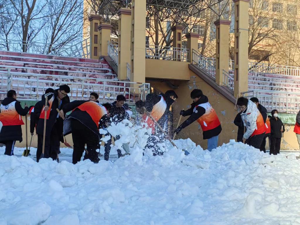 活动过程中,寒风没能阻挡住同学们高涨的热情,大家不畏严寒、全力奋战、团结协作、互相配合,铁揪、扫帚等扫雪工具齐齐上阵,用行动服务他人,用爱心奉献温暖,成为了OD在线一道最靓丽的风景线,极大的彰显了【官网】团学组织的先锋气质。行动是最好的“融雪剂”,经过广大团学骨干近三个小时的共同奋战,在白雪皑皑的田径场上,一条宽阔平坦的“暖心跑道”映入了我们的眼帘。工作任务完成后,同学们还久久不肯离去,纷纷合影留念、畅谈心得体会。交流中,大家表示参加此次专项行动前想的就是清雪除冰,服务同学;参加行动后得知的是,组织建设需要思想引领,团队建设需要载体促进,“自找苦吃”精神的领悟更需要实践体验。