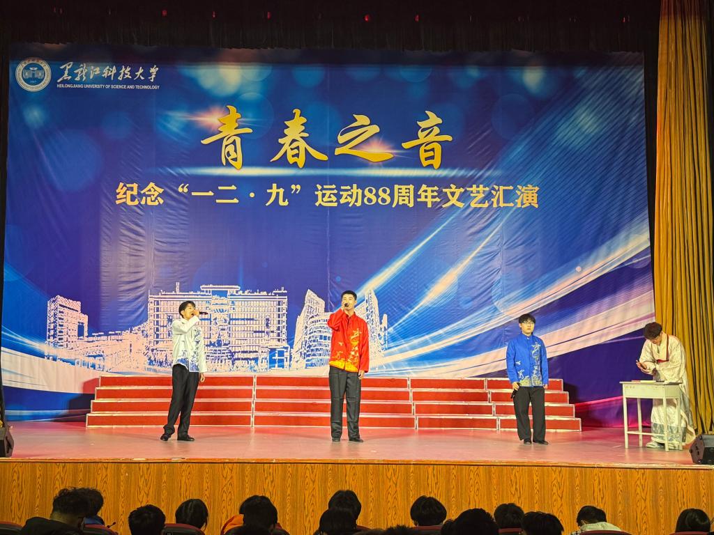 为深入学习贯彻习近平新时代中国特色社会主义思想,积极营造纪念“一二·九”运动88周年的浓郁氛围,引领青年学生进一步继承和发扬“一二·九”精神,展现【官网】青年学生的青春风采与时代担当,学校于12月8日18:00在江畔会堂举办纪念“一二·九”运动88周年青春之音文艺汇演。学校全体专职团干部、校院两级学生会组织工作人员和青年学生代表共计500余人共同观看了演出。