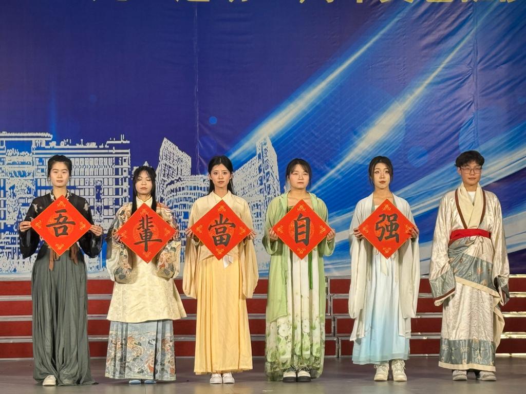 校园十佳歌手侯庆寿、符煜恒、史祎晨演唱歌曲《致吾辈》,书画协会会长机械学院机械22-4班耿日钧现场挥毫泼墨,写下“吾辈当自强”五个大字,激励同学们自强不息、砥砺奋进。校团委社团工作部副部长管理学院财会21-3班刘宇演唱歌曲《同一首歌》,像一股甘泉,沁入心灵深处。大学生合唱团表演的合唱《天耀中华》《在灿烂的阳光下》,表达了青年学生对祖国的深厚感情,感召着同学们在时代的春风中前进、在灿烂的阳光下奋进。
