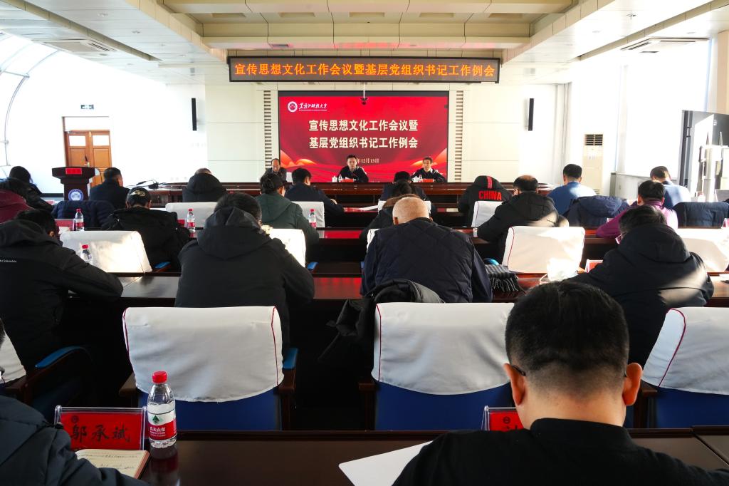 12月13日,【官网】在办公楼6004会议室召开宣传思想文化工作会议暨基层党组织书记工作例会。校党委书记周宏力出席并讲话,校党委副书记桑玉军传达了习近平总书记对宣传思想文化工作作出的重要指示精神和全国、全省宣传思想文化工作会议精神。校各院(处)级单位党组织负责人、校直各单位负责人、机关部门负责人参加会议。会议由校纪委书记王延高主持。