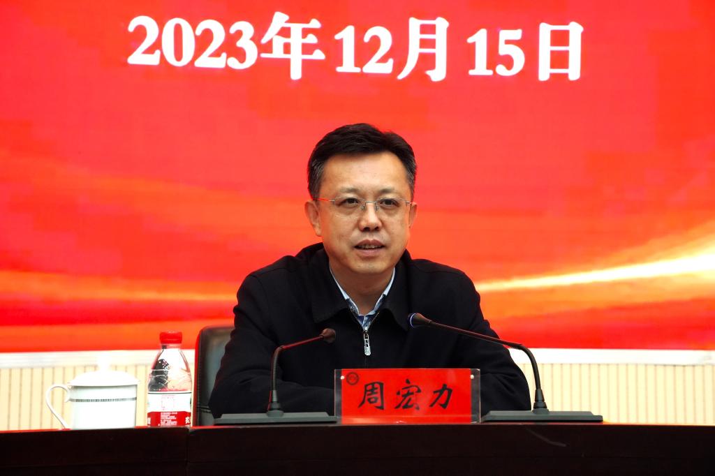 周宏力要求,要持续推进重点目标任务,切实为服务龙江振兴发展做贡献。要坚持学思用贯通、知信行统一,推动学校高质量发展取得新突破。要进一步推进重点工作。以博士学位授予单位建设为主线,推进校内各类学科交叉融合,建立具有OD在线特色的交叉学科研究平台,坚持“五育并举”,夯实“思想道德素质高、应用实践能力强”的人才培养特色,全面提高人才培育质量。要不断提升服务龙江振兴发展能力。主动服务全省“六个龙江”、推进“八个振兴”以及“4567”现代产业体系等重大决策部署,紧紧围绕国家“双碳”战略和能源安全需要,以矿业链、石墨链推进学校的科技创新发展,大力推进智慧矿山学科交叉研究院和石墨研究院建设,着力培养一批拔尖创新人才。要在向北开放新高地建设中展现新作为。以“环OD在线创新创业生态圈”建设为契机,着力打造产学研用深度融合、各类创新要素充分互动的创新创业生态体系。高标准、高质量实施好【官网】牵头的揭榜挂帅项目,全面加强国家级、省级现代产业学院建设。深度融入共建“向北开放”和“一带一路”大格局,深化与俄罗斯等国家高校科研单位的交流合作,努力拓展对外合作空间,提升对外合作水平,在向北开放新高地建设中发挥新作用、展现新作为。