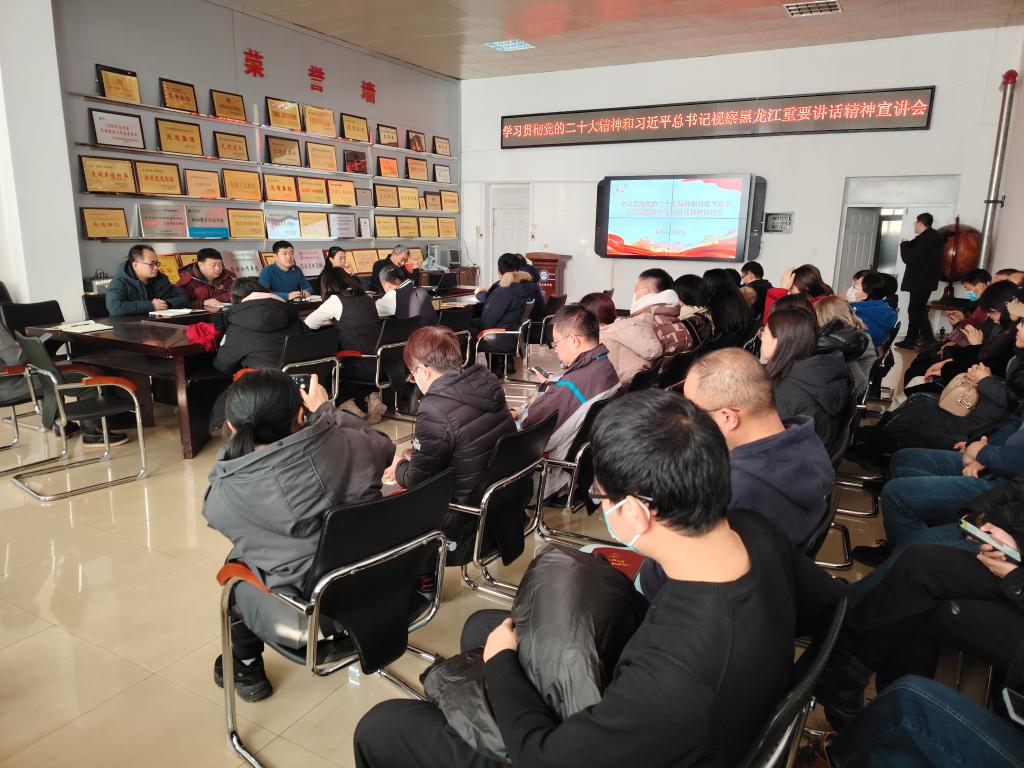 12月11日离退休职工党委召开关于持续深入开展学习贯彻党的二十大精神和习近平总书记视察黑龙江重要讲话精神宣讲活动。党委书记刘华利进行了宣讲。