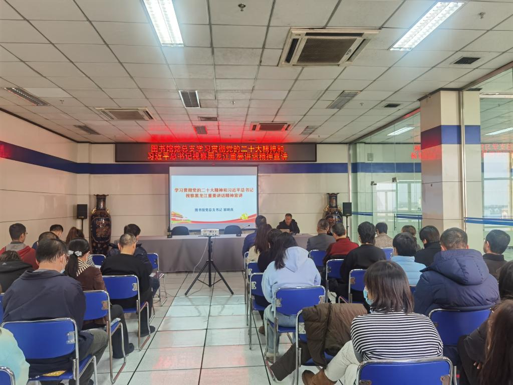 12月13日,图书馆党总支开展了学习贯彻党的二十大精神和习近平总书记视察黑龙江重要讲话精神宣讲活动。党总支书记郭明良分别从“深入学习领会党的二十大精神”、“全面贯彻落实习近平总书记视察黑龙江重要讲话精神”和“深刻领会教育、科技、人才是全面建设社会主义现代化国家的基础性、战略性支撑”三个方面进行了讲解。