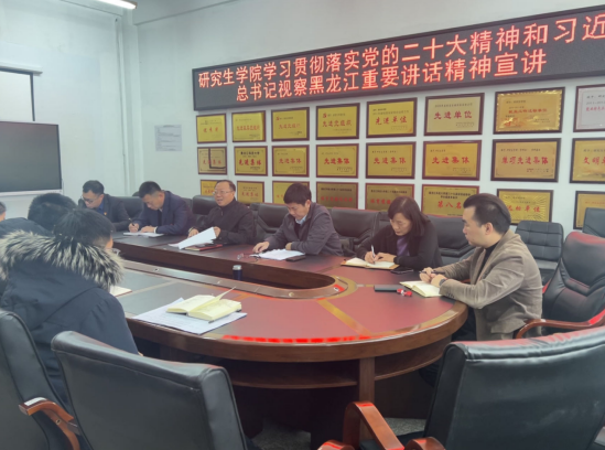 12月14日,研究生学院开展学习贯彻党的二十大精神和习近平总书记视察黑龙江重要讲话精神宣讲。党委书记王维杰从“要牢牢把握在国家发展大局中的战略定位,奋力开创黑龙江高质量发展新局面”、“要以科技创新引领产业全面振兴,加快形成新质生产力”等七个方面诠释了习近平总书记视察黑龙江重要讲话核心要义。