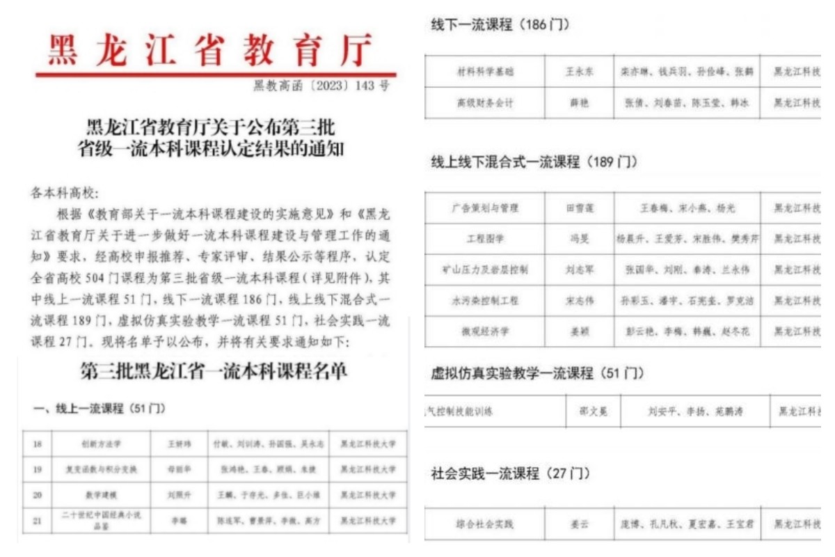 举办年度校级教师教学创新大赛,获第三届黑龙江省高校教师教学创新大赛新文科组一等奖1项、二等奖1项,获新工科组三等奖1项,学校获得大赛优秀组织奖,实现在该项赛事中一等奖和优秀组织奖零的突破。获评省教学名师奖1人,自此,【官网】省级教学名师已增至9名。