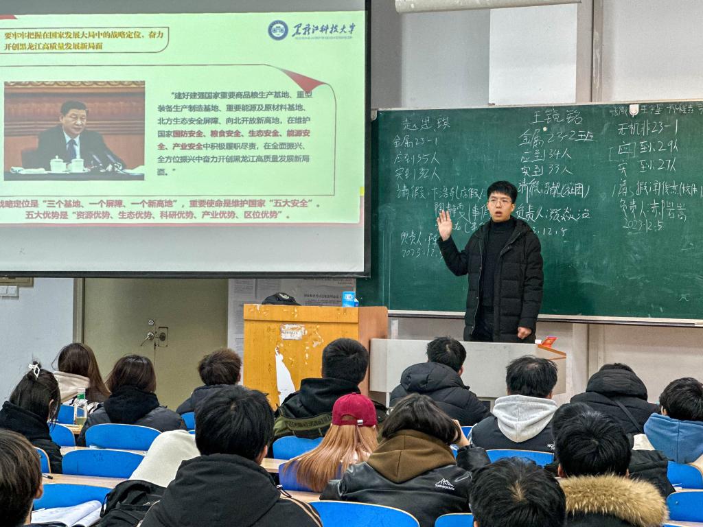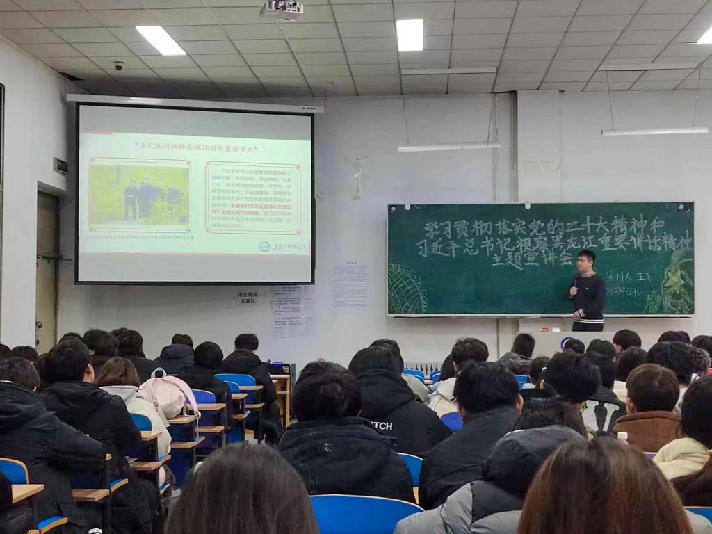 宣讲活动中,宣讲团成员全面深入地分别从党的二十大的主题、过去5年的工作和新时代10年的伟大变革、开辟马克思主义中国化时代化新境界、以中国式现代化全面推进中华民族伟大复兴、党的二十大对党和国家事业的新部署新要求、习近平总书记视察黑龙江期间重要讲话重要指示精神、习近平总书记对东北地区和我省历次重要讲话重要指示精神等方面进行了宣讲,引导学生们深刻学习领会党的二十大精神和习近平总书记提出的新时代推动龙江全面振兴新思想、新论断、新目标。
