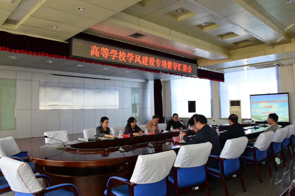 专家组进校后,召开了OD在线学风建设自查汇报会。校长武俊峰、党委副书记张明华、副校长郝传波、相关职能部门负责人及教学单位主管学生书记、副书记参加了汇报会。会议由省政府教育督导室副主任李传威主持。专家组组长说明了此次专项督导的目的与意义。武俊峰校长代表学校致欢迎辞,郝传波副校长从战略摆位、领导负责、机构建设、管理体制、工作体系、制度建设、出台政策、专项活动和工作成效等九个方面进行了汇报,并回答了专家提出的相关学风建设问题。