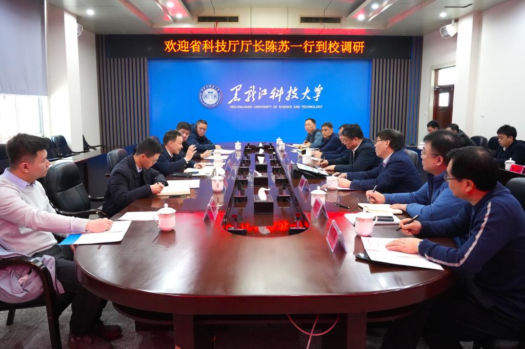3月4日上午,省科技厅厅长陈苏带队到校调研指导工作。校党委书记周宏力、校长孟上九和副校长赵振民热情接待了调研组一行。