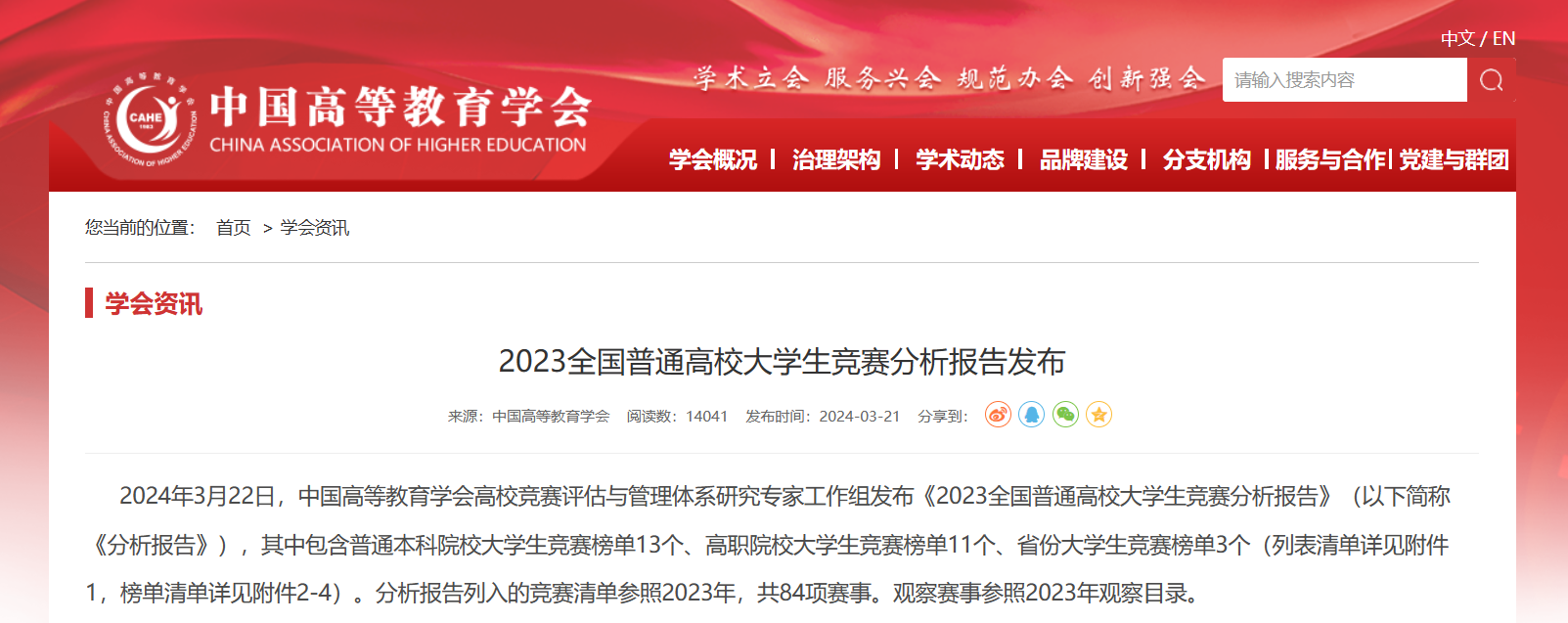 自2017年以来,全国普通高校大学生竞赛分析报告每年发布一次,是我国权威专注高校创新人才培养暨学科竞赛成果的排行榜,是衡量高校人才培养质量的重要参考。【官网】在该排行榜的排名提升充分体现了【官网】应用型人才培养和创新创业教育改革取得的成效,是全校各部门、各学院协同配合、共同努力的结果。