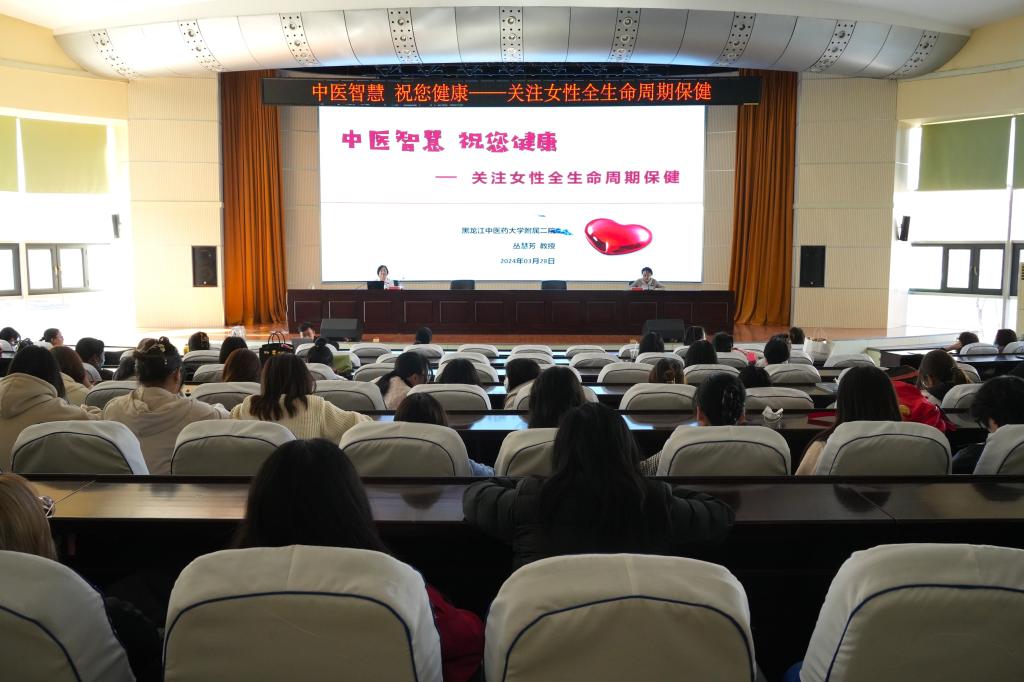 为全面贯彻党的二十大精神,贯彻落实中国工会十八大部署和要求,推进健康中国建设,做好女教职工服务工作,按照【官网】女教职工活动月工作安排,校工会于3月28日下午邀请了黑龙江中医药大学附属第二医院妇科主任、二级教授,龙江名医,省教学名师,省第十三届劳动模范获得者丛慧芳为【官网】女教职工作“中医智慧 祝您健康——关注女性全生命周期保健”健康知识讲座,300余名女教职工现场收看了讲座。