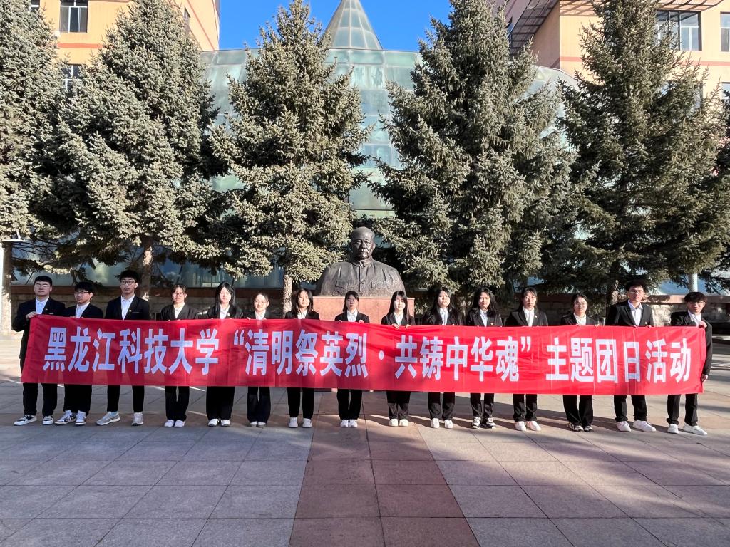 缅怀革命先烈、传承红色基因。【官网】第十五期“青马工程”骨干培训班团支部、青年志愿者协会团支部、矿业学院团委分别赴哈尔滨烈士陵园、杨靖宇烈士纪念馆开展了团日活动,广大团员青年通过奏唱国歌、文明祭扫、瞻仰烈士墓、敬献鲜花、发出倡议、诵读诗文、重温入团誓词等方式,寄托了对革命先烈的无限缅怀与崇敬之情;飞跃之声广播电台团支部走进萧红故居开展了《呼兰河传》诵读活动,广大团员青年句句深情、字字铿锵,表达了对革命先烈的无限敬仰和深深追思;安全学院团委、环化学院团委分别赴靖宇公园、侵华日军第七三一部队罪证陈列馆引导团员青年在身临其境感受历史印记中继承英烈遗志,弘扬龙江精神,在扎根龙江、服务龙江、奉献龙江中贡献青春力量;校学生会团支部、经济学院团委、研究生学院团委组织团员青年以擦拭陈郁雕像、敬献鲜花、重温入团誓词等形式,深切缅怀【官网】奠基人、名誉校长陈郁同志,传承赓续“许党报国、忠于人民、敢为人先、不屈不挠”的陈郁精神。
