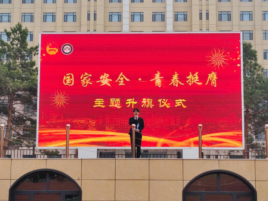 据悉,在第九个全民国家安全教育日,学工部、校团委以“国家安全 青春挺膺”为主题,组织全校青年学生开展了主题班团活动、全民国家安全教育日专项答题、演讲比赛、海报设计大赛、专题讲座等系列活动。本次升旗仪式是“国家安全 青春挺膺”系列活动之一,旨在教育引导全校各级团学组织和团员青年深刻理解、准确把握总体国家安全观的丰富内涵,努力提高防范抵御国家安全风险能力,更加清醒认识国家安全之“险”,把握国家安全之“要”,着力培塑国家安全之“能”,带头做中国特色社会主义的坚定信仰者、建设者,自觉做维护国家安全的忠诚实践者、捍卫者。