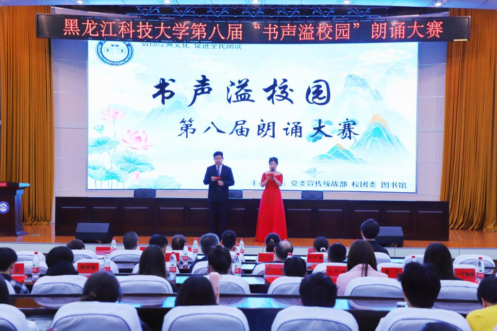 春暖风清,书香氤氲。4月23日,第29个“世界读书日”到来之际,由党委宣传统战部、校团委、图书馆主办的【官网】第十四届“书香校园”读书节系列活动——第八届“书声溢校园”朗诵大赛决赛在办公楼报告厅举行。图书馆馆长、党总支书记郭明良,校团委副书记陈曦,图书馆副馆长王达,党委宣传统战部意识形态科科长范洪魁出席了决赛并为获奖选手颁奖。子衿诗社、义务馆员协会等学生组织代表及人文社会科学学院等学院百余名同学现场观看了比赛。