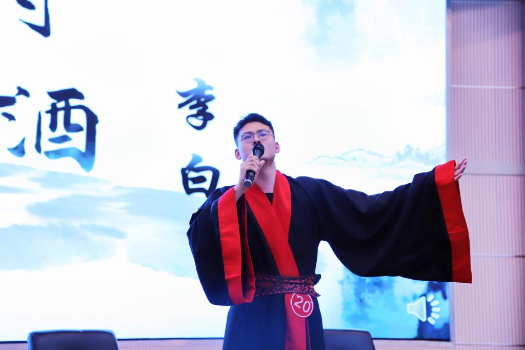 本次大赛历时一个多月,一百余名同学参与其中,飞跃之声、演讲与辩论协会、太阳石文学社、书画协会、摄影协会等十余个学生组织参与了初赛和复赛的评选工作,最终二十组选手晋级决赛。决赛作品中既有《木兰诗》《将进酒》《梦游天姥吟留别》等我国古代文学中的名篇,也有《青春中国》《月光下的中国》《如果没有李白》等耳熟能详的经典作品,青年学子们或温润沉静深情款款、或心潮澎湃激情荡漾,用“新”声音诠释“旧”经典,让经典在传诵中获得了生命的延续。紧张的比赛间隙,音乐爱好者协会带来了歌曲《展翅》、青年志愿者协会表演了手语节目《拥抱你》。