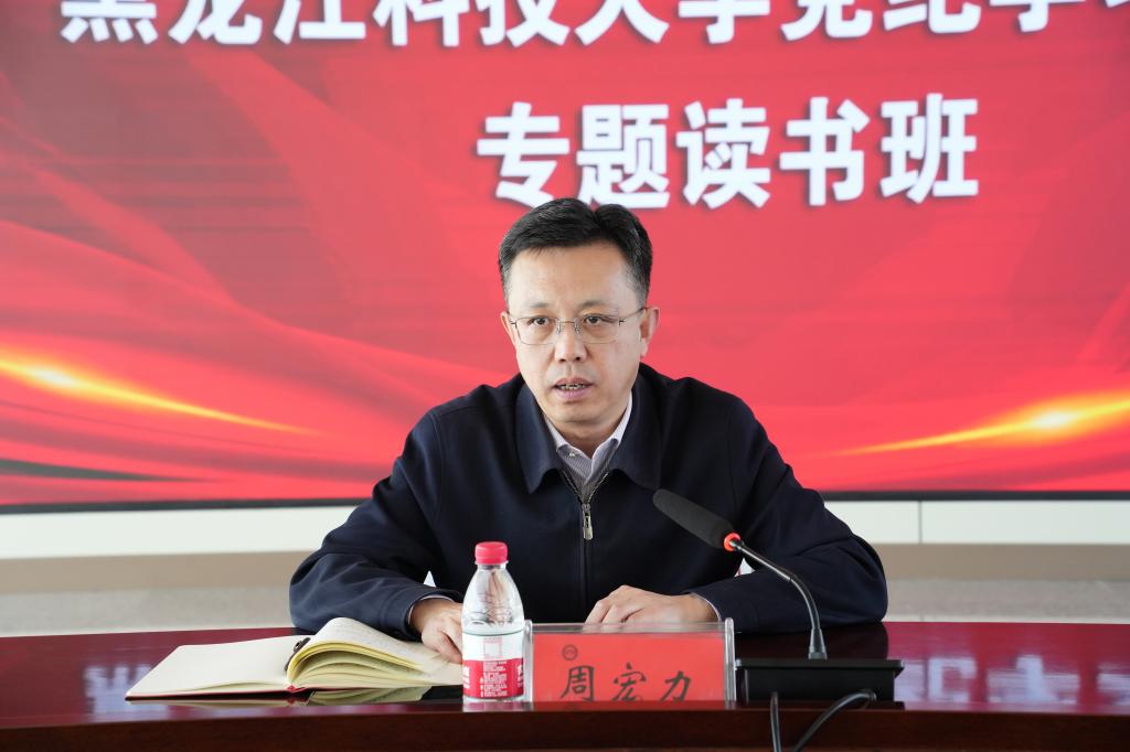 周宏力强调,要深化思想认识,准确把握党纪学习教育的目标任务。要坚持以“学纪”为基础,铸牢对党忠诚的政治品格。通过专题学习,深学细悟习近平总书记关于加强党的纪律建设重要论述,从中感受真理力量,增进思想认同,把准政治方向,更加坚定拥护“两个确立”、坚决做到“两个维护”,筑牢“身在最北方、心向党中央”的政治忠诚。要坚持以“知纪”为前提,增强遵规守纪的高度自觉。通过专题学习,强化自律自觉,自觉用党的纪律规矩校正思想和行动,始终把服务师生、推动发展作为最重要的政绩,把学习成果落实到干好本职工作、推动事业发展上,创造经得起历史和师生检验的业绩。要坚持以“明纪”为根本,构筑拒腐防变的思想堤坝。通过专题学习,进一步强化对加强党的纪律建设重要性的认识,认清忽视党纪、违反党纪问题的后果危害,做到做人不逾矩、办事不妄为、用权不违规,永葆共产党人清正廉洁的政治本色。要坚持以“守纪”为关键,强化狠抓落实的使命担当。通过专题学习,坚持两手抓两促进,把开展党纪学习教育同巩固拓展学习贯彻习近平新时代中国特色社会主义思想主题教育成果结合起来,同深化能力作风建设活动结合起来,同高质量完成学校重点工作结合起来,融会贯通、一体推进,确保学校党委部署和各项重点工作任务落到实处。