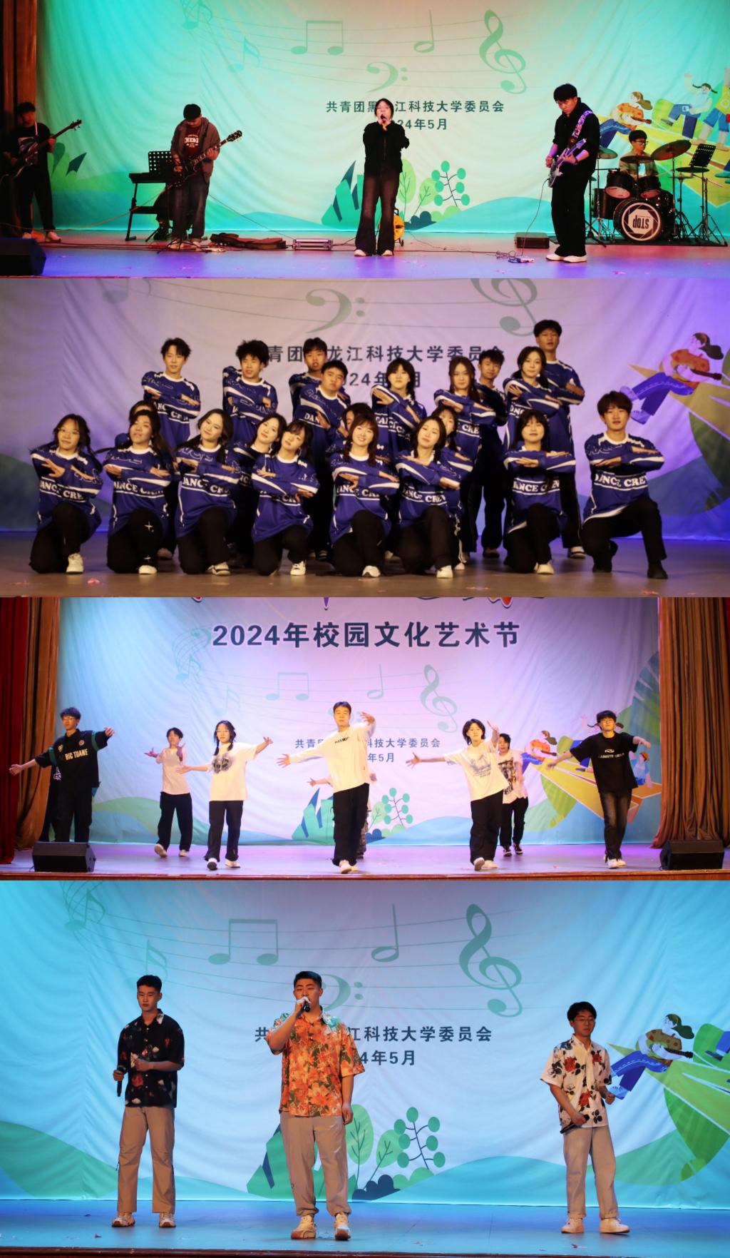 文艺汇演以“青春奋斗正当时挺膺担当建新功”为主题,共分为“同心追梦、春始佳音”“锦时筑梦、且待芳华”“拼搏圆梦、谱写华章”三个篇章,涵盖语言类、声乐类、舞蹈类、器乐类等多种节目形式。风行吉他社的歌曲《倔强》为演出拉开了帷幕;Up街舞团表演的舞蹈《你要跳舞吗》、《零电流》,大学生音乐爱好者协会演唱的歌曲串烧《我们的歌》、《星辰大海》,千界堂动漫社表演的舞蹈《初始之音响彻未来》等节目用动人的舞步、跳跃的音符,诠释出青春挥洒不尽的激情;朝阳英语协会的英语剧《新白雪公主》,德艺社的小品《小学生作文有画面了》,大学生相声爱好者协会的相声《这不巧了么?》等语言类节目,看点十足、笑料不断;大学生礼仪队的传统服饰走秀《东方美、醉花间》,大学生演讲与辩论协会表演话剧《绥棱黑陶》、大学生武术协会表演的武术《精武忠魂》、哈达郭庄舞社表演的舞蹈《远方的祝福》,从不同角度展示了中华传统文化的源远流长、博大精深;最后学生社团骨干共同演绎的手势舞《逆光》将整场晚会推向了高潮。