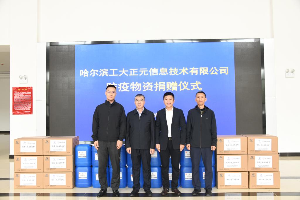 新冠肺炎疫情发生以来,学校的疫情防控工作得到了校友和社会各界友人的持续关注和支持,多次收到广大校友和爱心企业的捐助。9月18日上午,学校校友李晗龙牵线道里区爱心企业——哈尔滨工大正元信息技术有限公司为学校捐赠医用一次性口罩5万只、次氯酸消毒液2吨,助力学校的疫情防控工作。学校党委副书记赵科学、道里区委副书记李晗龙、哈尔滨工大正元信息技术有限公司副总经理肖毅欧出席捐赠活动。