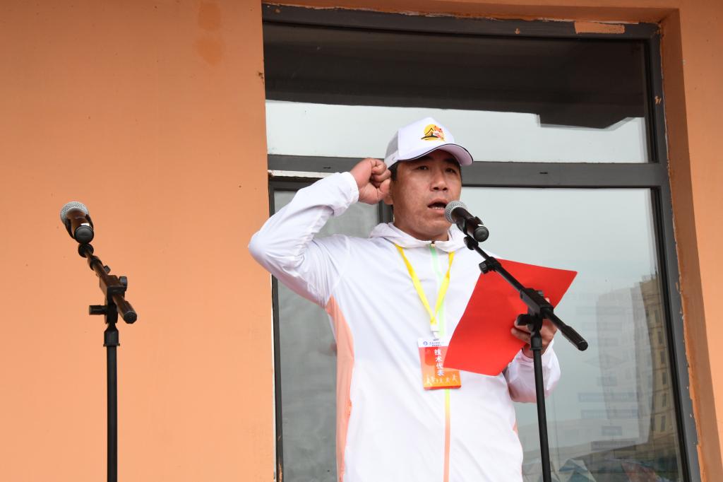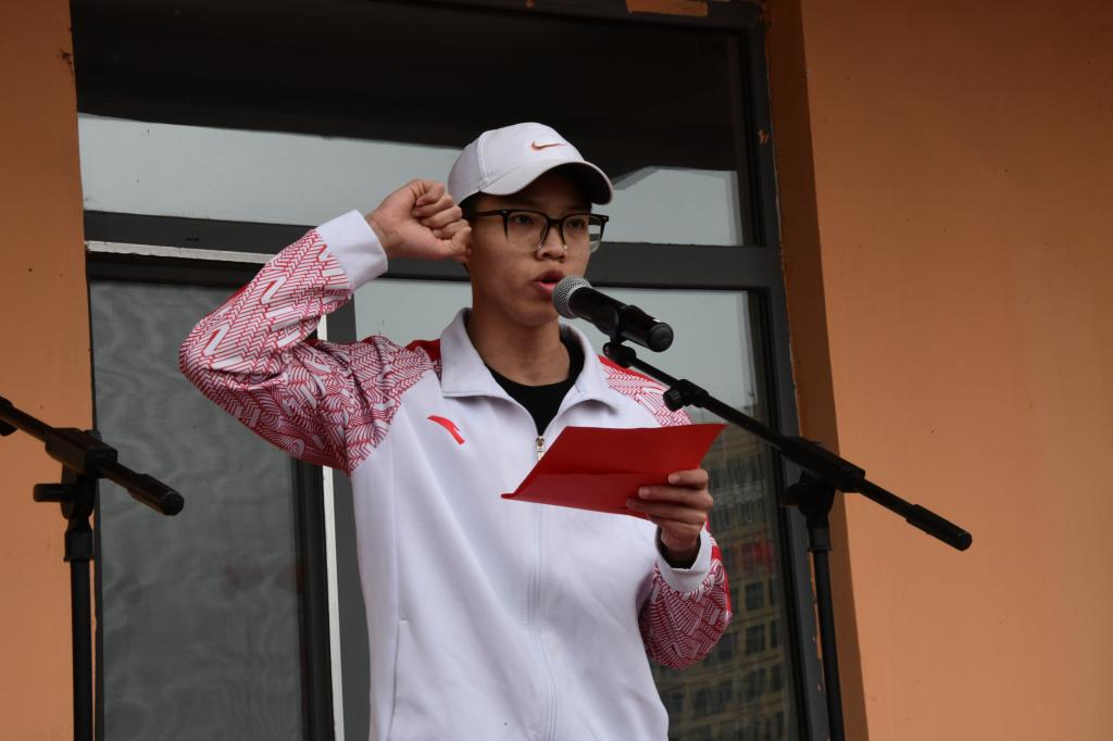 体育部教师陈鑫朋代表全体裁判员、学生李阳代表全体运动员庄严宣誓,承诺将在比赛中恪守体育道德,遵守竞赛规则,赛出水平,赛出风格。