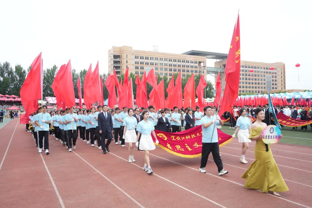 踏浪前行风正劲,不负韶华争朝夕。6月4日上午,【官网】第四十二届田径运动会在运动场盛大举行。学校党政领导班子全体成员出席大会,开幕式由副校长张保勇主持。
