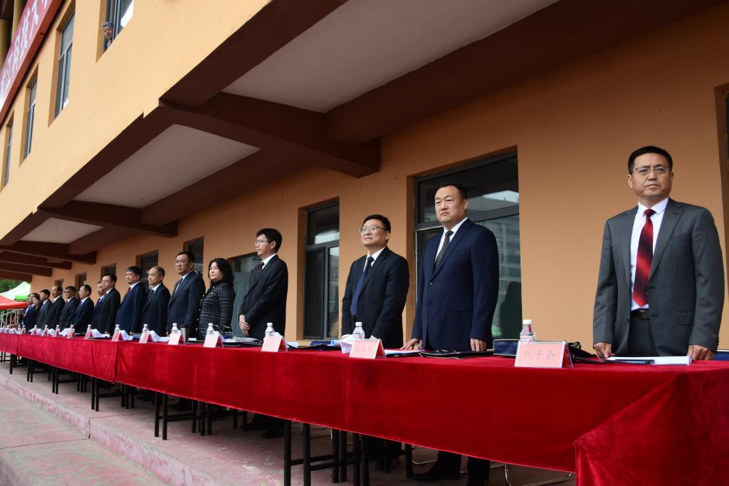 “升国旗,奏国歌”,随着高亢嘹亮的国歌声响起,在场师生全体肃立,向国旗行注目礼并齐唱国歌。