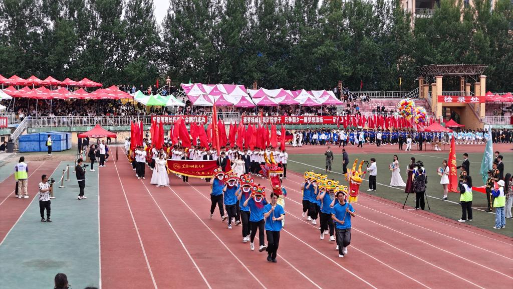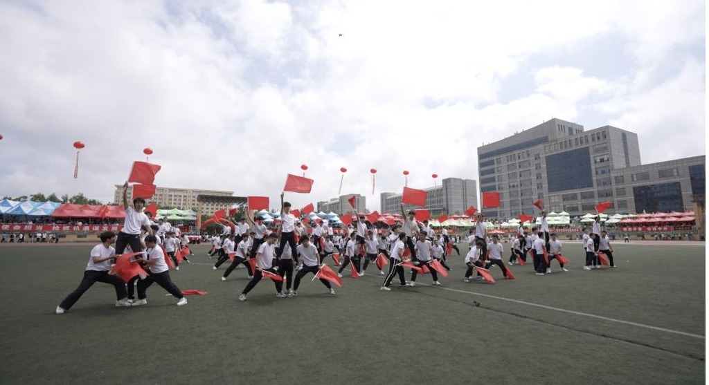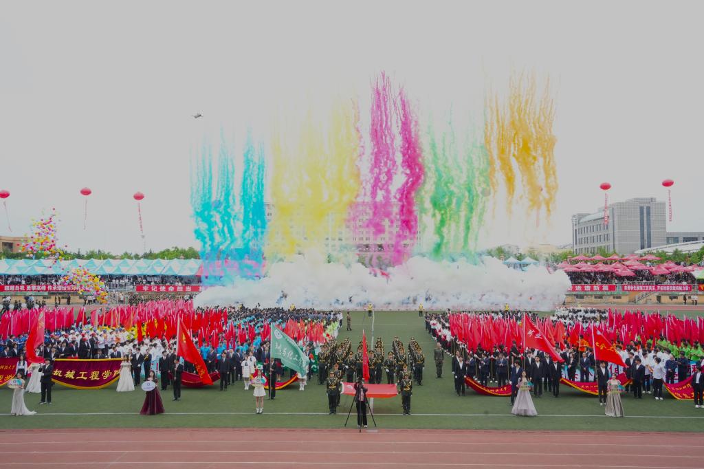 党委书记周宏力宣布大会开幕。运动场内礼炮齐鸣、彩带满天,五颜六色的气球腾空而起,现场顿时变成了欢乐的海洋。