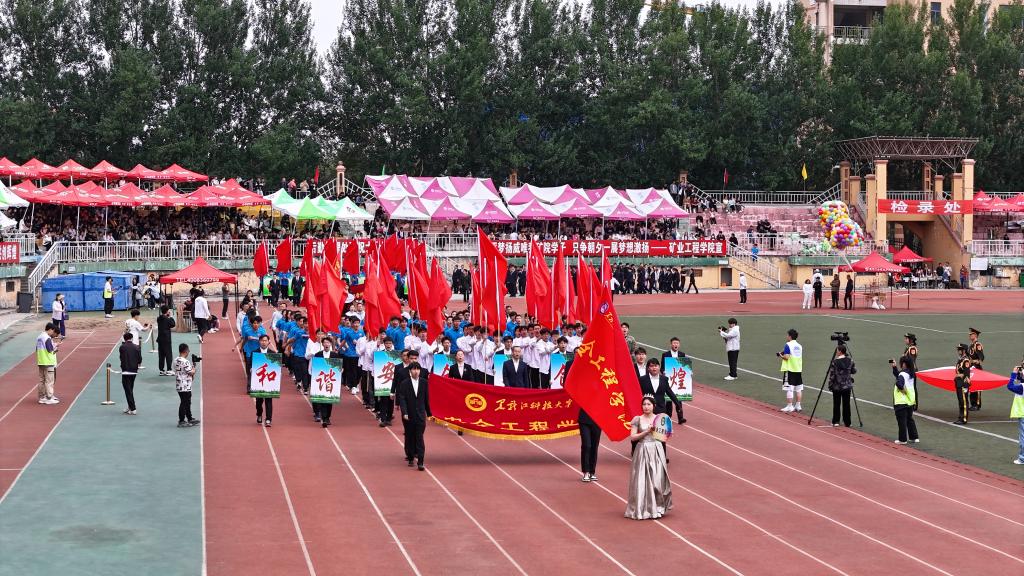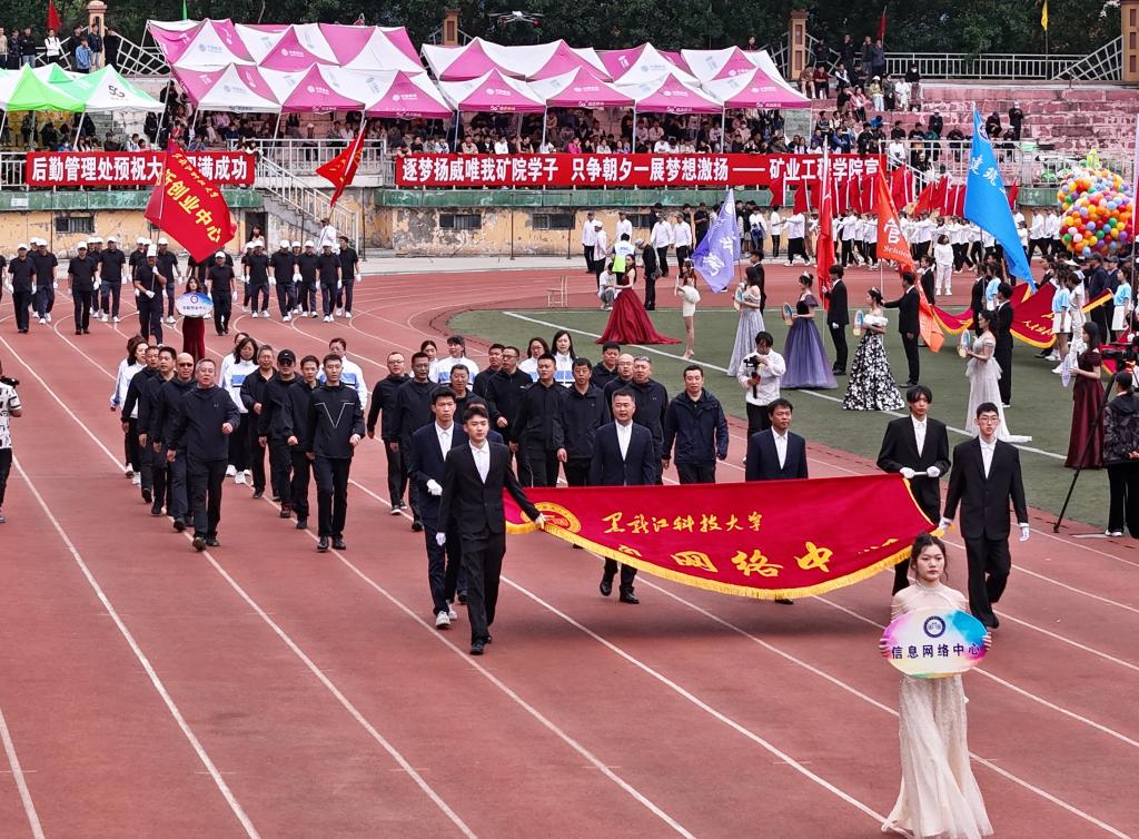 校长孟上九致开幕词。他代表学校对运动会的胜利召开表示热烈祝贺;向辛勤筹备本次运动会的师生员工表示衷心感谢;向全体裁判员、运动员、志愿者致以崇高敬意!他指出,体育是“五育并举”育人体系的重要组成部分,是强健身心、磨练意志的最好载体。发展体育运动、增强师生体质是我们共同的责任使命。希望全体运动健儿勇于拼搏、团结协作、赛出风格、赛出水平。希望全校师生以本次运动会为契机,深入落实全民健身战略,积极参与体育锻炼,在锻炼中享受快乐、在运动中释放自我,“每天锻炼一小时,健康工作五十年,幸福生活一辈子”,为【官网】全面建成矿业特色鲜明的高水平应用型大学,为中华民族伟大复兴提供强大精神力量。