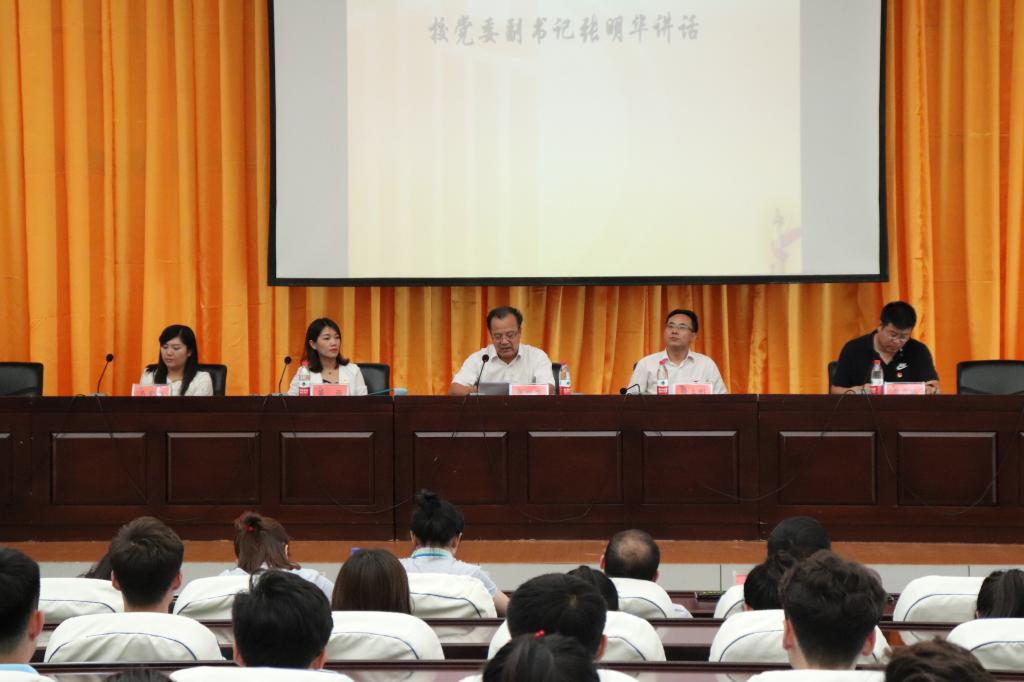 7月6日,“三下乡”社会实践重点团队出征仪式在办公楼报告厅举行。校党委副书记张明华出席活动并讲话;学工部部长、学生处处长薛立刚,校团委副书记苗雨;校团委马紫微老师,二级学院分团委书记,实践团指导教师代表,国家级、省级重点团队、专项团队,部分校、院级重点团队成员280余人参加了出征仪式。仪式由校团委宣传干事周恩远主持。