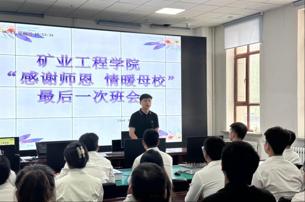 继承传统,勇攀高峰,争做新时代的引领者。坚持习近平新时代中国特色社会主义思想铸魂育人,加强毕业生理想信念教育。材料学院、计算机学院、管理学院、理学院、外语学院开展优秀典型事迹分享活动,激励广大毕业生励志勤学、勇于实践、全面发展,充分发挥先进典型示范引领作用。矿业学院、环化学院、安全学院、电气学院、材料学院、计算机学院、外语学院组织召开毕业主题班会,引导毕业生在道珍重、话离别的同时不忘初心,继续前行。