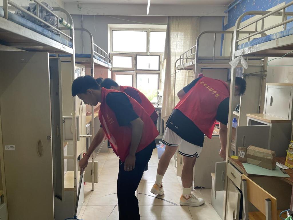 尘去情留,启程新篇,传承良好的精神风貌。学生社区承载着毕业生青春奋斗的回忆。矿业学院、环化学院、安全学院、电气学院、电信学院、计算机学院、管理学院、经济学院、人文学院、马克思学院、理学院、外语学院开展寝室清扫活动,教育引导毕业生在临行前整理好寝室卫生,保护好公共设施,用实际行动将寝室回归最初的模样,为学弟学妹留下一个干净、温馨的家,将良好的品德修养传承给新同学。