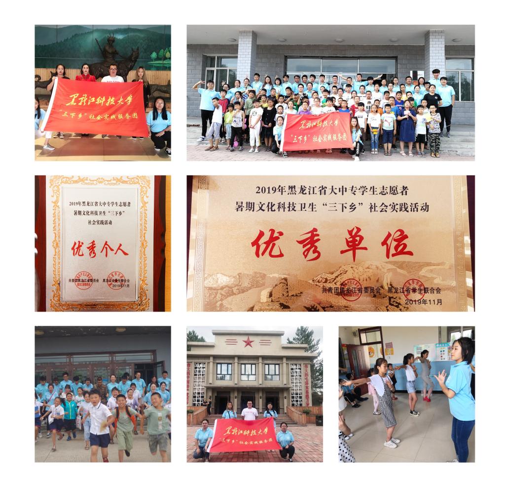 11月25日,团中央青年发展部、中国青年报、中国青年网共同举办2019年全国大中专学生志愿者暑期“三下乡”社会实践“镜头中的三下乡”成果遴选活动。经过团队报备审核、质量筛选发布、网络展示、专家评审等环节,【官网】获得2019 年全国大中专学生志愿者暑期“三下乡”社会实践活动“优秀单位”和黑龙江省暑期“三下乡”社会实践“优秀单位”,在2019 年大中专学生“三下乡”暑期社会实践“千校千项”成果遴选活动中省级重点团队队长徐诗雨、李炜、成焕荣被评为“千校千项”优秀实践者,校团委干事武昭阳被评为2019年黑龙江省暑期“三下乡”社会实践活动“优秀个人”。