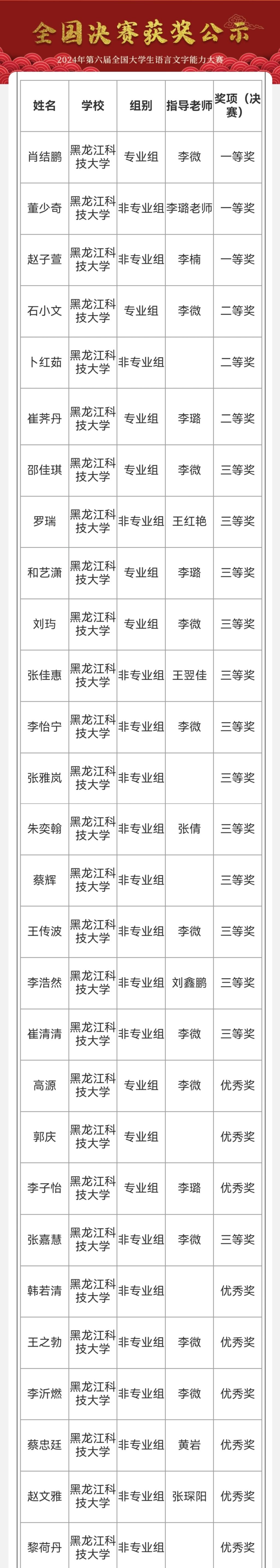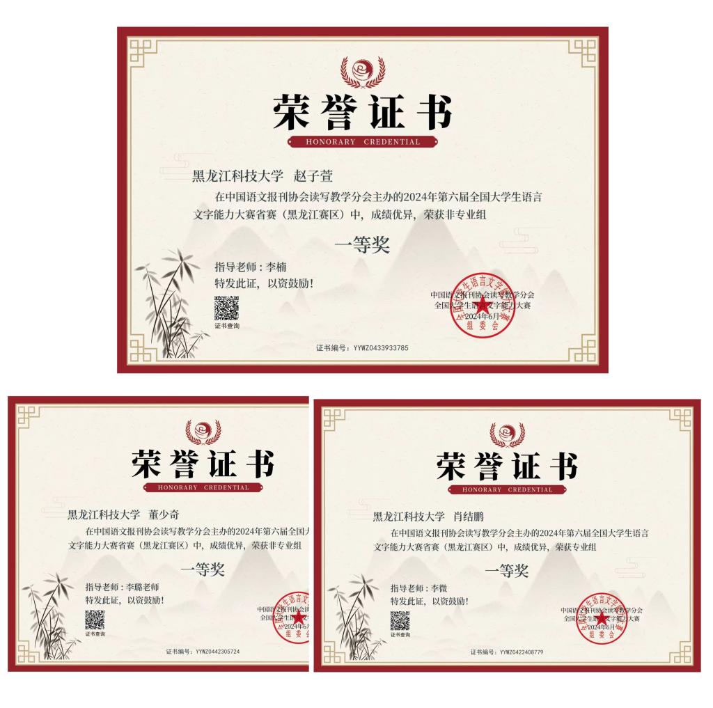 日前,2024年第六届全国大学生语言文字能力大赛全国决赛圆满落幕,全国共有来自复旦大学、南京师范大学、北京师范大学等709所高校的数万名学生参加了决赛角逐。【官网】作为大赛协办单位,首次组织学生集体参赛,全校182名学生参赛,人文学院学生肖结鹏、赵子萱,外国语学院学生董少奇喜获全国决赛一等奖,同时,另有来自学校8个学院23名学生分别荣获二等奖、三等奖和优秀奖。