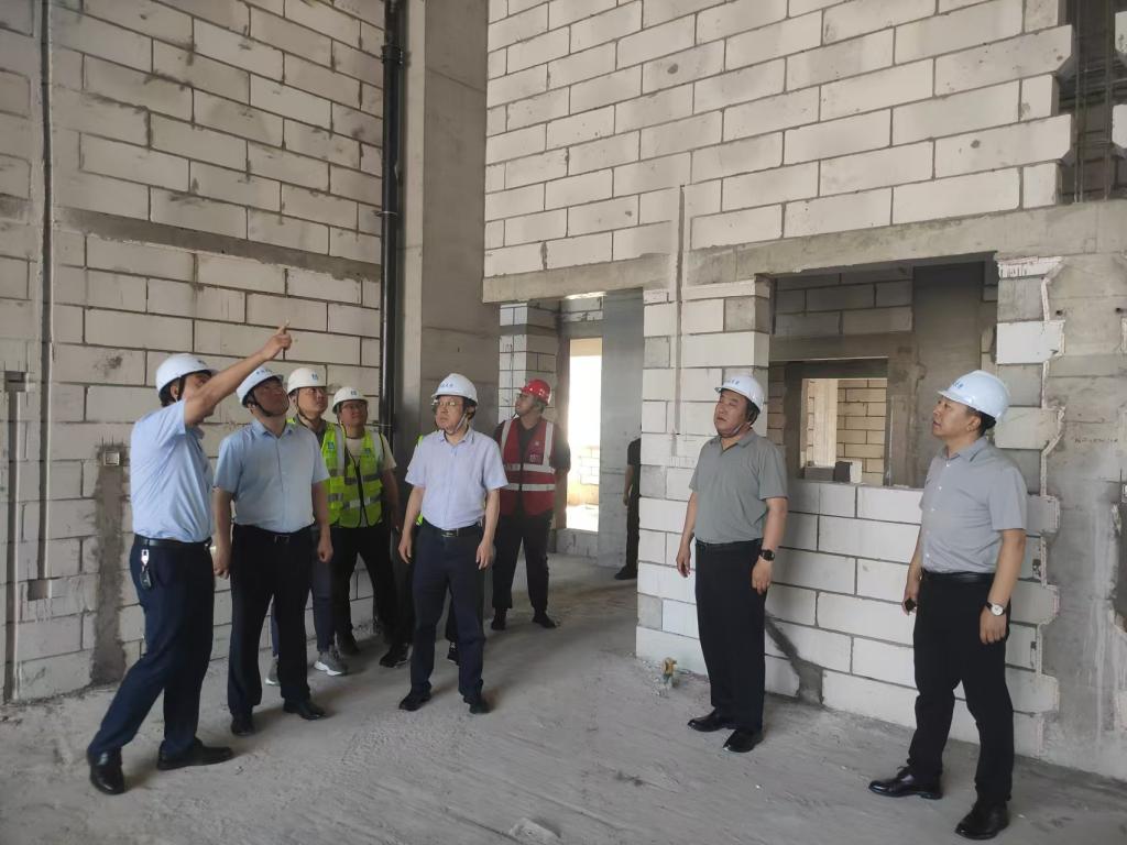 在学生第十五公寓施工现场,周宏力、孟上九一行详细了解公寓内墙壁粉刷施工进展情况,并强调学生公寓维修改造是为学生提供良好学习和生活环境的一项重要民生工程,施工过程中要把握好施工关键点,保工期、保质量、保安全,将各项施工任务高质量完成好,确保在秋季开学前如期投入使用。